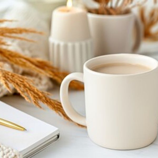 Just bring yourself, a notebook or journal, and your favorite drink. Creating a cozy environment—lighting a candle or finding a quiet space—is encouraged but optional.